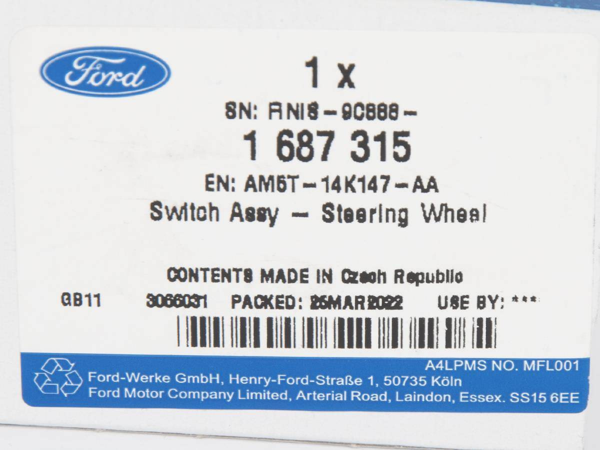 • BEZPIECZEŃSTWO:Część jest fabrycznie nowa i oryginalna marki Ford, spełniająca europejskie normy jakości i bezpieczeństwa. Dla prawidłowego działania pojazdu zaleca się montaż w autoryzowanym lub wykwalifikowanym serwisie.
