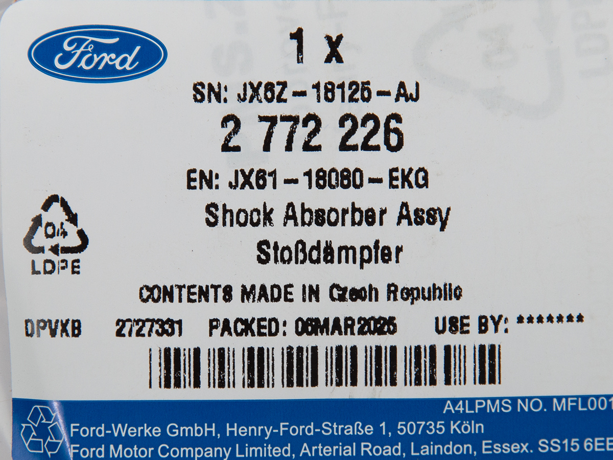 Oryginalne amortyzatory Ford OE utrzymują właściwą przyczepność kół, skracają drogę hamowania i zwiększają stabilność w zakrętach. Ich wysoka odporność na zużycie zapewnia długą żywotność i bezpieczeństwo w codziennej eksploatacji. Regularna kontrola zawieszenia pozwala zachować pełną skuteczność tłumienia i komfort jazdy.