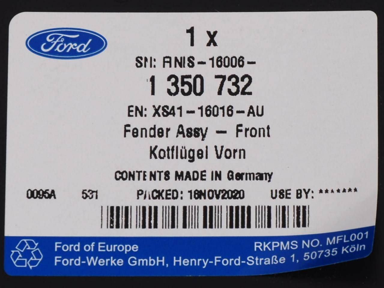 Błotnik lewy Focus 04-05 - XS41-16016-AU, 1350732, oryginał Ford OE