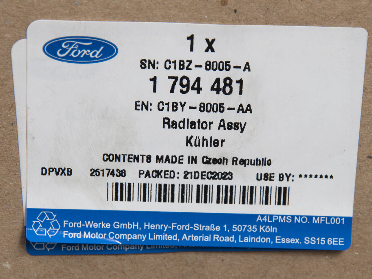 Chłodnica silnika cieczy Fiesta 13-19 / 1.6 eb ( 160,182 km) -  C1BY-8005-AA , 1794481, oryginał Ford OE