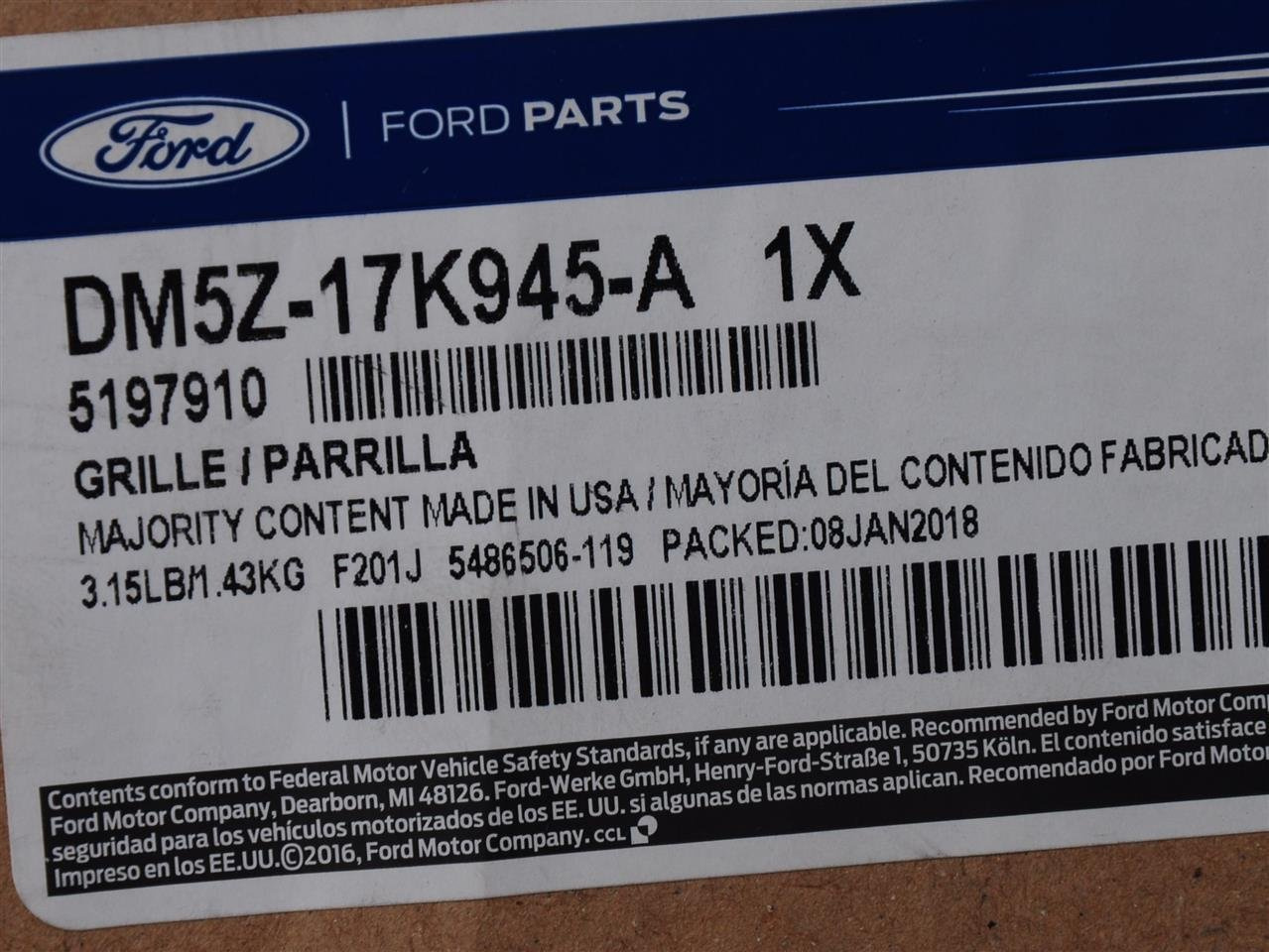 - NUMER USA:DM5Z-17K945-A