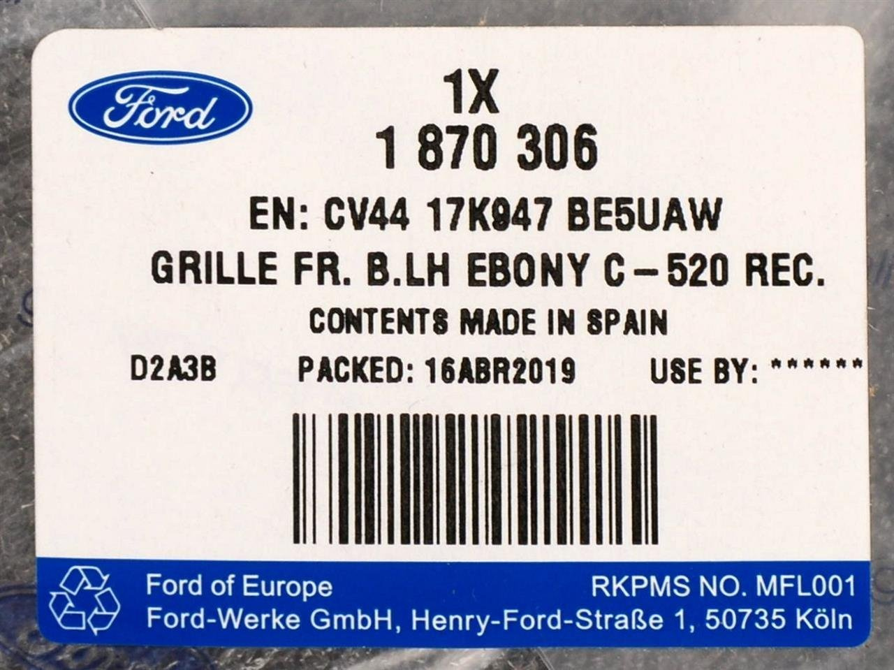 • BEZPIECZEŃSTWO:Część jest fabrycznie nowa i oryginalna marki Ford, spełniająca europejskie normy jakości i bezpieczeństwa. Dla prawidłowego działania pojazdu zaleca się montaż w autoryzowanym lub wykwalifikowanym serwisie.
