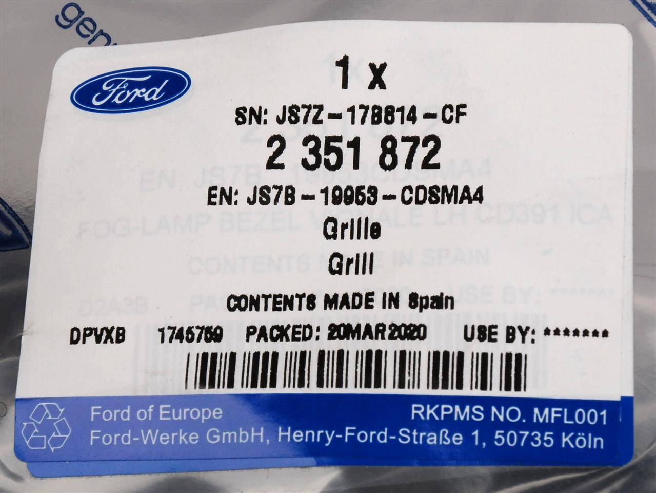 - BEZPIECZEŃSTWO:Część jest fabrycznie nowa i oryginalna marki Ford, spełniająca europejskie normy jakości i bezpieczeństwa. Dla prawidłowego działania pojazdu zaleca się montaż w autoryzowanym lub wykwalifikowanym serwisie.