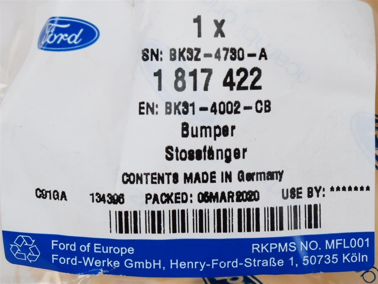 - BEZPIECZEŃSTWO:Część jest fabrycznie nowa i oryginalna marki Ford, spełniająca europejskie normy jakości i bezpieczeństwa. Dla prawidłowego działania pojazdu zaleca się montaż w autoryzowanym lub wykwalifikowanym serwisie.