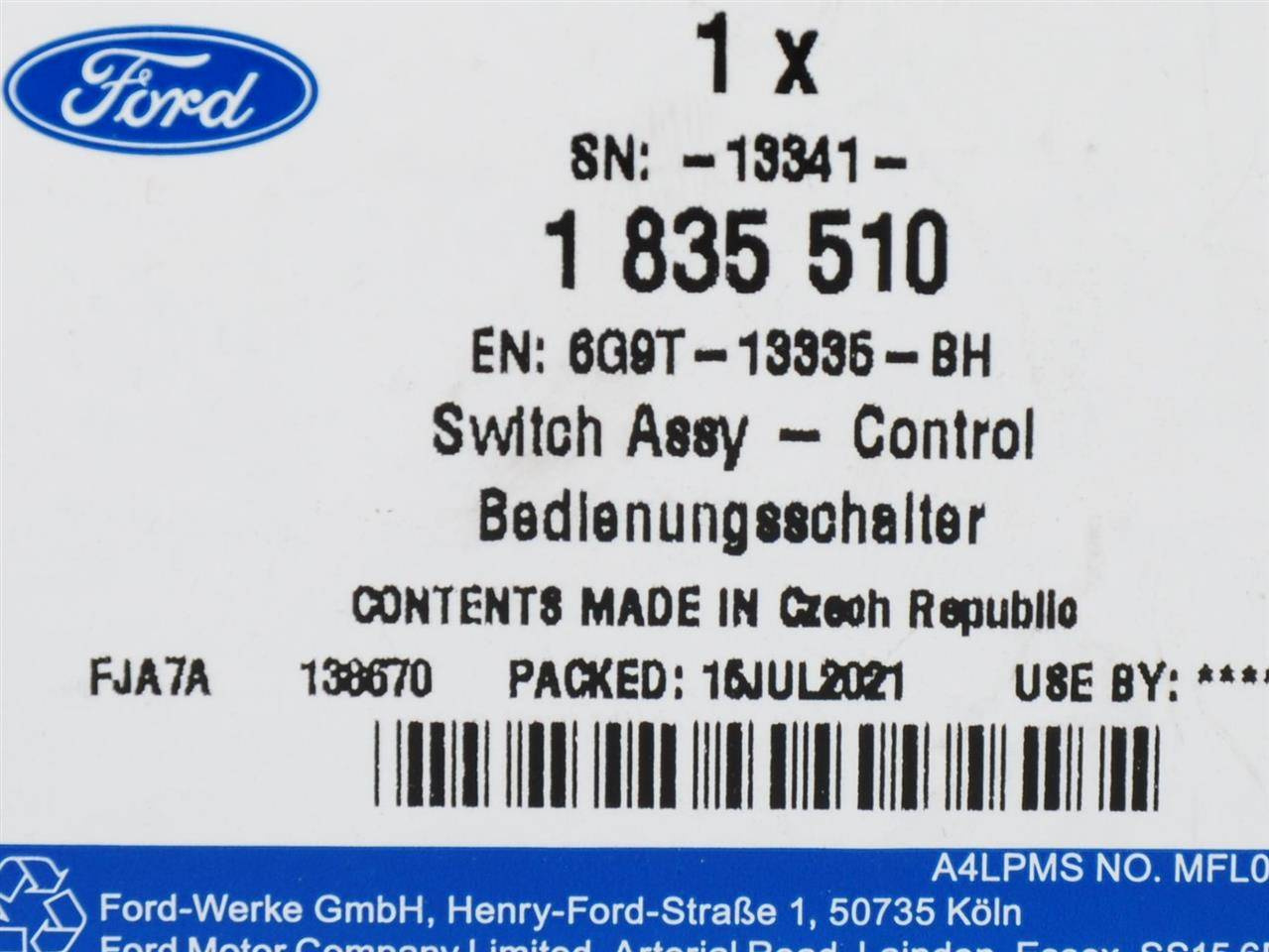 - BEZPIECZEŃSTWO:Część jest fabrycznie nowa i oryginalna marki Ford, spełniająca europejskie normy jakości i bezpieczeństwa. Dla prawidłowego działania pojazdu zaleca się montaż w autoryzowanym lub wykwalifikowanym serwisie.