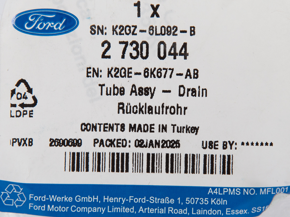Rura powrotna oleju turbosprężarki 2.0 ecoboost Kuga Escape 2020- - K2GE-6K677-AB, 2730044, oryginał Ford OE