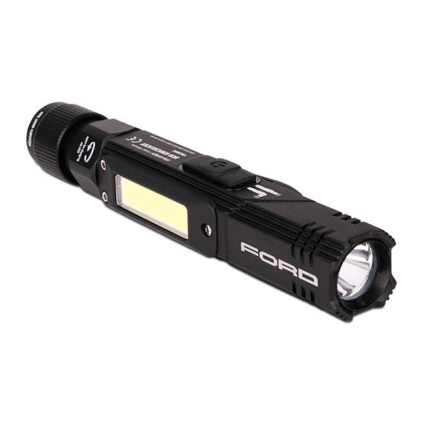 Świetlik LED Ford Outdoor daje sobie rade właściwie z każdym wyzwaniem. Bryzgoszczelna lampa może świecić zarówno na biało, jak i czerwono, służyć jako latarka, zaczep do paska lub czołówka. Lampa ma moc świetlna sięgającą 150 lumenów i 5 poziomów światła, które można ładować za pomocą dołączonej wtyczki USB. Poza tym daje się wyginać pod kątem do 90 stopni i ma właściwości magnetyczne.