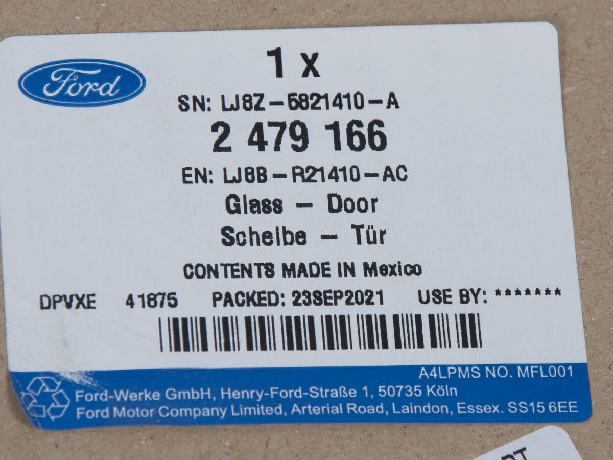 Szyba prawa drzwi przednich Mustang mach-e 21- -  LJ8B-R21410-AC	, 2479166, oryginał Ford OE