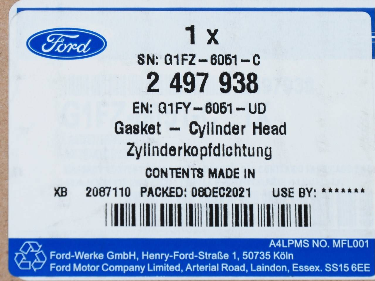 Uszczelka głowicy cylindrów 2,3 eb Mustang 19- -  G1FY-6051-UD , 2497938, oryginał Ford OE