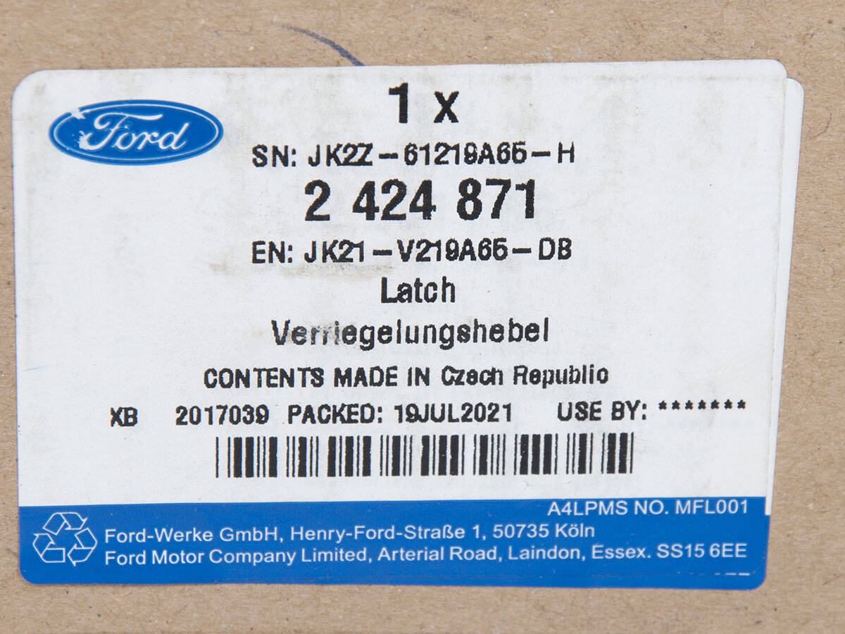 Zamek lewy drzwi przód Transit/tourneo Custom 18- - JK21-V219A65-DB, 2424871, oryginał Ford OE